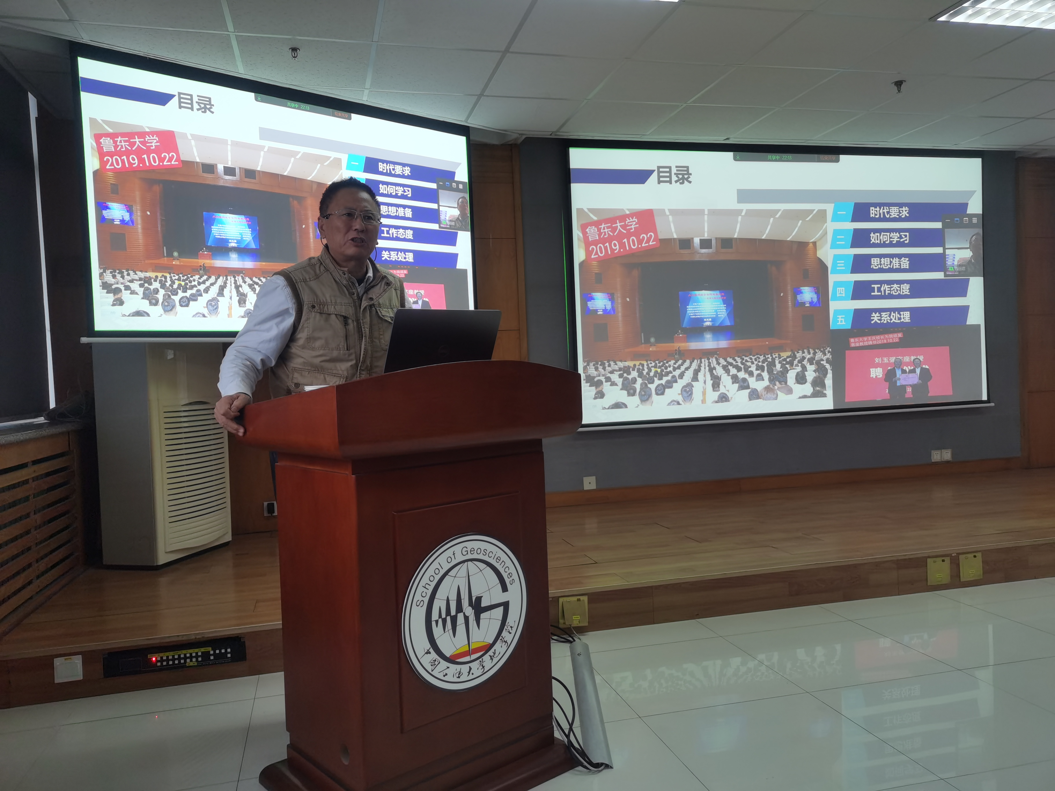 刘玉强教授从学习方法、思想准备、工作态度、关系处理等几个方面向在场的师生深刻寄语,他表示在公司里学习,需要把握重点笔记、提前预习、扩展广度和延伸深度几个方面,同时通过哲学思想学习,提升个人思辨能力,更加深入认识事物本质规律,而越喜欢读书的人,越有实力去到更广阔的平台,越有机会去选择自己想要的生活。而在思想准备方面,刘玉强教授嘱托在场员工,一定要做个正派的人、正能量的人,事物好坏要通过分析才知道对错;在走上工作岗位开始时,做事情要慢慢做,做了就要做好学会。他告诫同学们,要关心国家大事,领会中央精神,将来就应该用行动报效党和国家才对;他鼓励同学们要培养自己勇于创新、敢于创业的决心和信心,考虑困难,但不惧怕困难,要始终相信自己,勇敢前行,生活的美好定能与你不期而遇,并且在日常生活中要用善良、包容、宽容对待人,要用欣赏、学习、理解的眼光看待人。在工作态度方面,刘玉强教授表示,地质科学是最古老的学科之一, 涉及人类生存空间的方方面面,我们应适应新时期对于地质人的要求,未来可大有作为,在单位要以勤为先,努力增长知识,增长经验和才干,提高动手能力,增强巩固学到的知识。他强调,对待自己的技术业务要有工匠精神,刻苦专研,精益求精,追求完美,持之以恒。