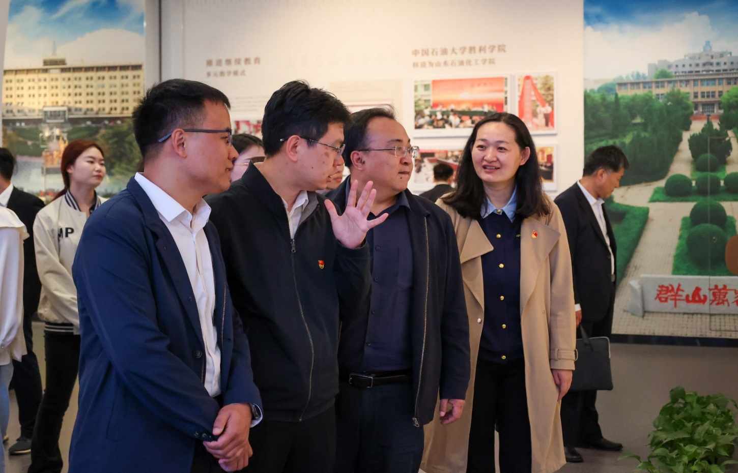 胜利油田李政一行在公司党委副书记郑珊珊等人的陪同下参观了校史馆。
