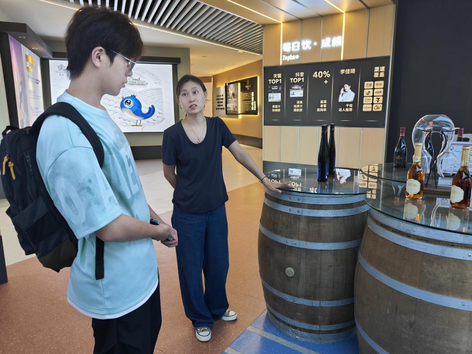 负责人向队员们介绍企业发展历程和蓝莓饮品 胡博涵摄