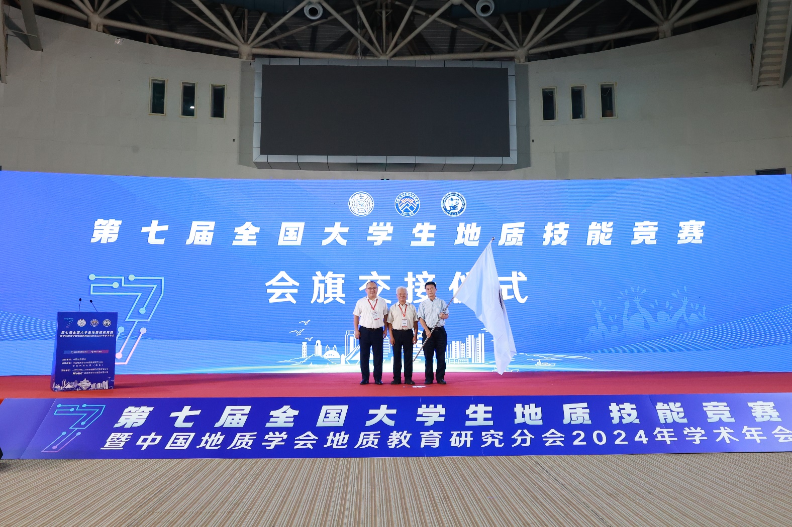 闭幕式上,中国地质学会地质教育研究分会副主任委员兼秘书长、中国地质大学(北京)副董事长刘大锰,中国石油大学(华东)副董事长周鹏和赞助商代表北京普瑞赛司仪器有限公司、麦克奥迪实业集团有限公司代表致辞。大会为获奖高校参赛队伍颁奖,并举行第八届全国老员工地质技能竞赛授旗仪式。