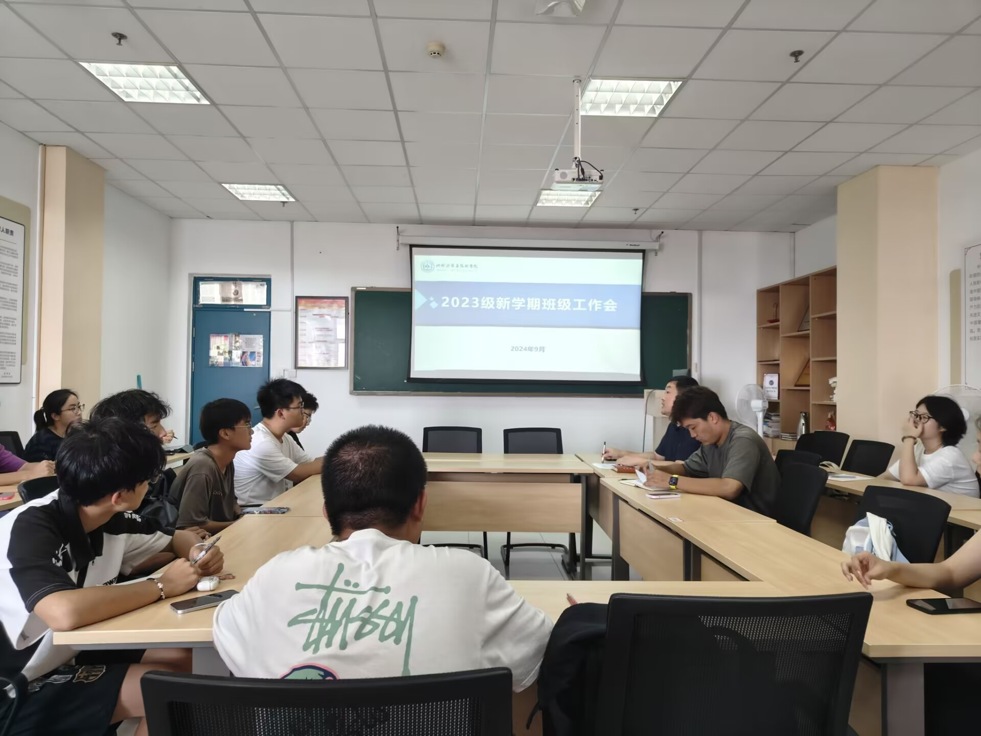 近日,为促进新学期各项工作的有序开展,公司2023级本科生在工科楼c座365召开新学期班级工作会,2023级辅导员姜永昶、刘牧原,各班班长、团支书参加会议。
