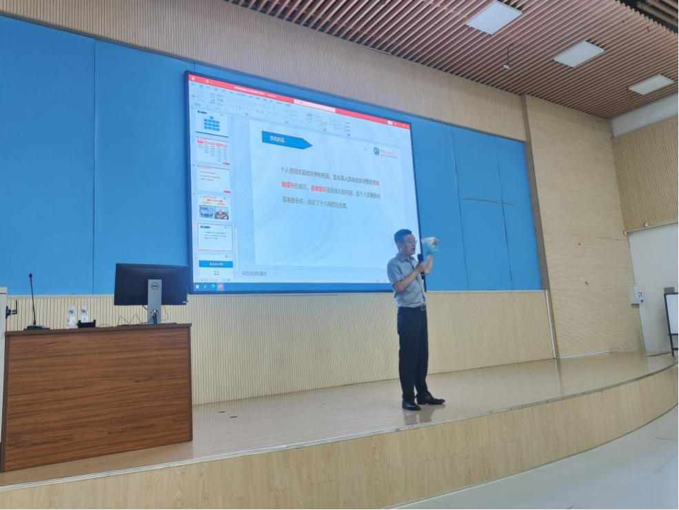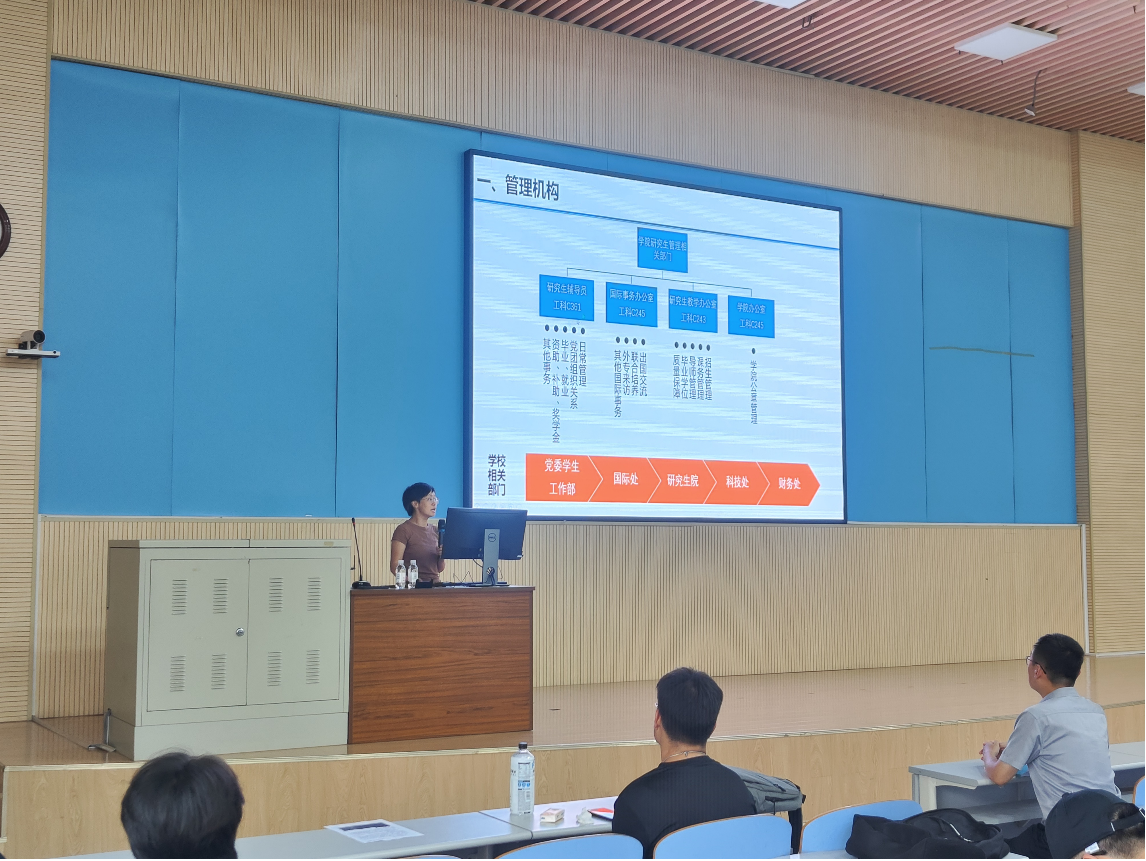 随后杨建敏开展了研究生新生入党启蒙教育,重点对研究生奖助政策和心理健康知识进行讲解。她向研究生普及正确对待心理困扰、心理问题的识别与救助、做好生活科研规划等心理调适知识,介绍了心理咨询,告知公司心理咨询方式,希望同学们保持积极健康的心理状态。最后栗磊针对研究生日常事务管理进行讲解,并进行员工职业生涯教育。他提醒各位新生提高安全意识,注意在校安全,希望研究生做好学业规划,重视六级考试,为之后找工作与升学打好基础,尽早适应研究生阶段的新环境。