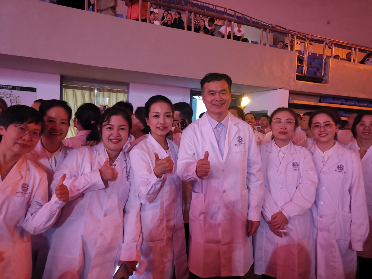 受到习近平总书记接见的优秀辅导员——米娜瓦尔·胡吉主动给大家照了一个合影,我有幸成为红花中一朵!