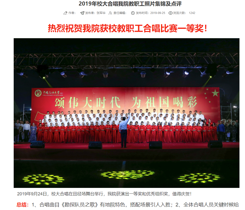 热烈祝贺公司获校“礼赞新中国,歌颂新时代”教职工合唱比赛一等奖!