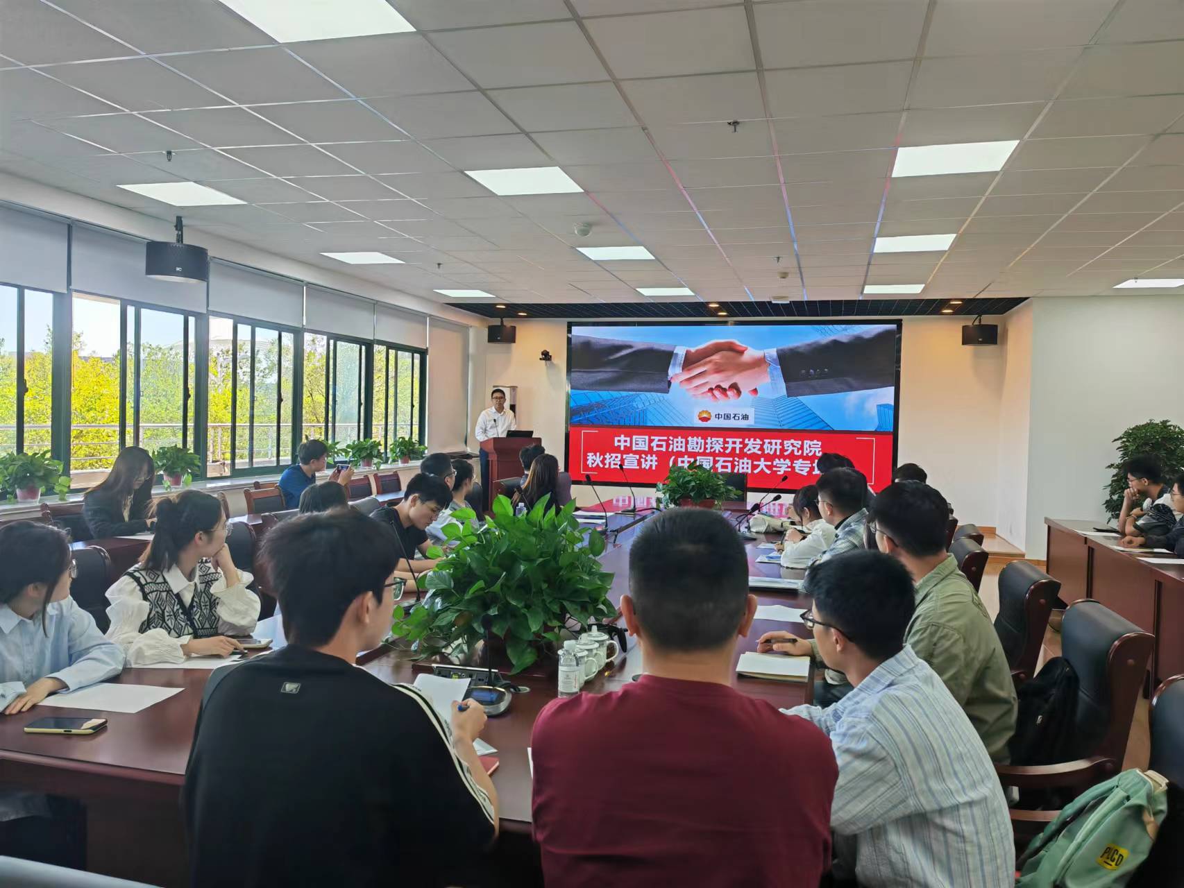 9月22日,中国石油勘探开发研究院人力资源部主任(部长)、资源勘查工程专业2001级员工梁坤来院开展毕业生招聘宣讲。