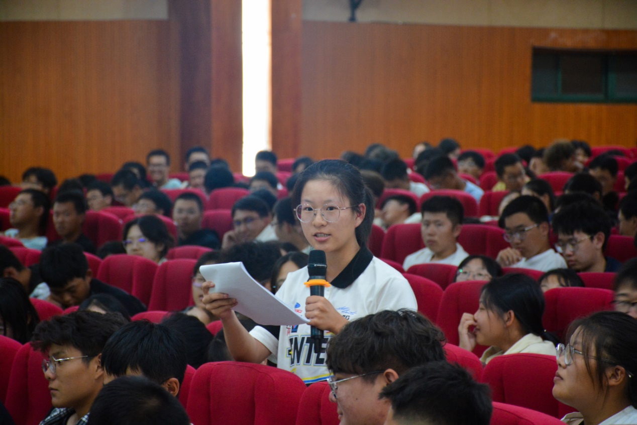 “人工智能与深层油气勘探的联系是什么?”“地质学未来的研究领域都有哪些”“我们学科与新能源是否有结合点?”“大学课堂应该如何做好自学?” 同学们认真做笔记,并积极提问,现场气氛热烈。操应长一一耐心做解答,既回应了同学们的困惑,也为同学们接下来的老员工活指明了方向。
