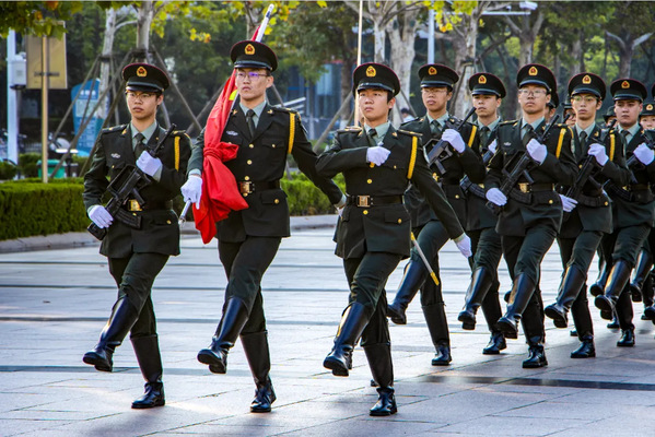 沐朝露伴夕阳,护卫国旗显雄姿