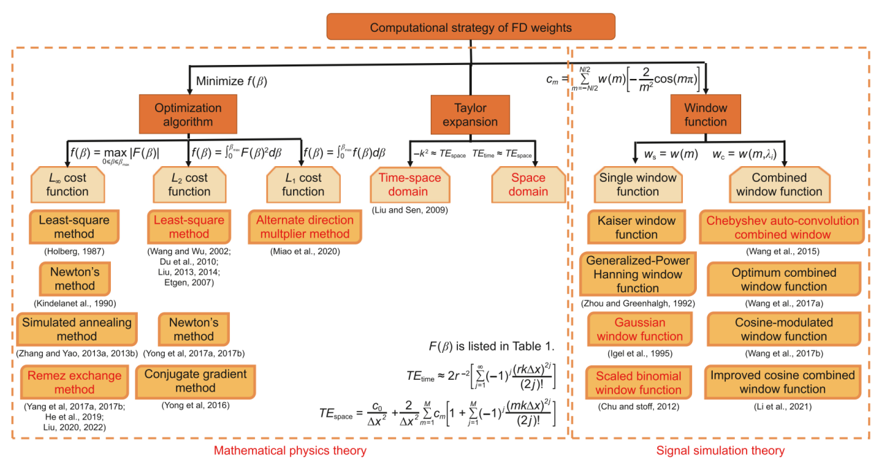 优化策略:通过优化算法求解最优问题来获取有限差分系数。这种策略可以在给定误差限制和固定阶数的有限差分算子下最大化覆盖带宽。例如,雷米兹交换算法可以最大化有限差分系数带宽。然而,这种方法的计算成本较高,可以通过减少迭代次数或使用全局求解技术(如最小二乘方法)来降低计算成本。