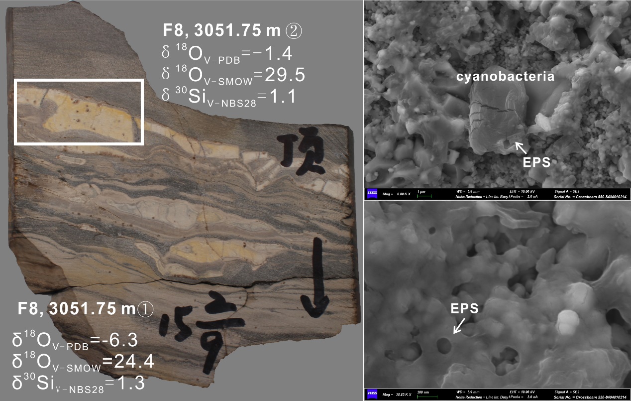 图2 热液硅质层中的蓝细菌