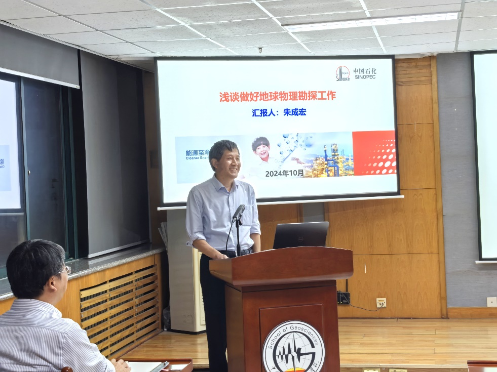 10月14日,中石化勘探开发研究院首席专家季玉新,首席专家张宏,首席专家、集团公司高级专家朱成宏,共同做客地学讲坛,为公司师生开展地球物理勘探主题学术报告,地球物理系张广智教授主持报告,公司60余名师生参加报告。