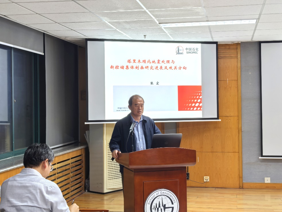 接着,张宏首席作题为“塔里木顺北地震处理与断控储集体刻画研究进展及攻关方向”的学术报告。他从问题“地震勘探中深层、超深层的定义范围”引起的现场师生热烈互动为开端展开报告,以塔里木顺北地区地质特点为基础,针对断控油气藏勘探开发地震技术需求以及地震处理解释技术攻关研究的进展展开,巧妙地以“顺藤摸瓜”为例介绍了特深层断缝体圈闭描述相关技术。他指出了实际生产环节中仍有一系列迫切待解的关键性问题,激励同学们投身科研,能源报国。
