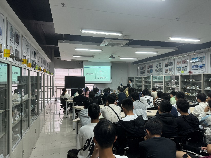 2022级资源勘查工程专业的海晴从专业学习、员工工作、志愿服务等方面分享了自己充实而忙碌的老员工活,向同学们传递了“只有荒凉的沙漠,没有荒凉的人生”的积极向上、坚韧不拔的拼搏精神,并寄语新生“做正确的事,不浪费、不摧残,力求不留遗憾”。2022级勘查技术与工程专业的张栩赫鼓励同学们要勇敢尝试、不断探索、迎难而上,做到脚踏实地和追求卓越。2021级本研一体班的刘子月向同学们详细介绍了社会实践、入团入党、综合测评等方面的相关政策和个人经验,告诉大家要认真过好每一天、踏实做好每件事,珍惜时间、把握机会。2022级地质学专业的高晓乐用朴实而真挚的语言将自己两年来的所见所闻娓娓道来,叮嘱同学们要秉承“勘探尖兵”精神,勤奋刻苦、认真钻研。2021级资源勘查工程专业的姚雪亮同学告诉大家老员工活要提前做好生涯规划,做好学习、科技竞赛、实践活动三方面的平衡。2020级勘查技术与工程专业的郑凯尹同学向同学们强调了本科阶段课程学习和实践学习的重要性,鼓励大家要积极动手实践,将理论知识转换成解决问题的能力。