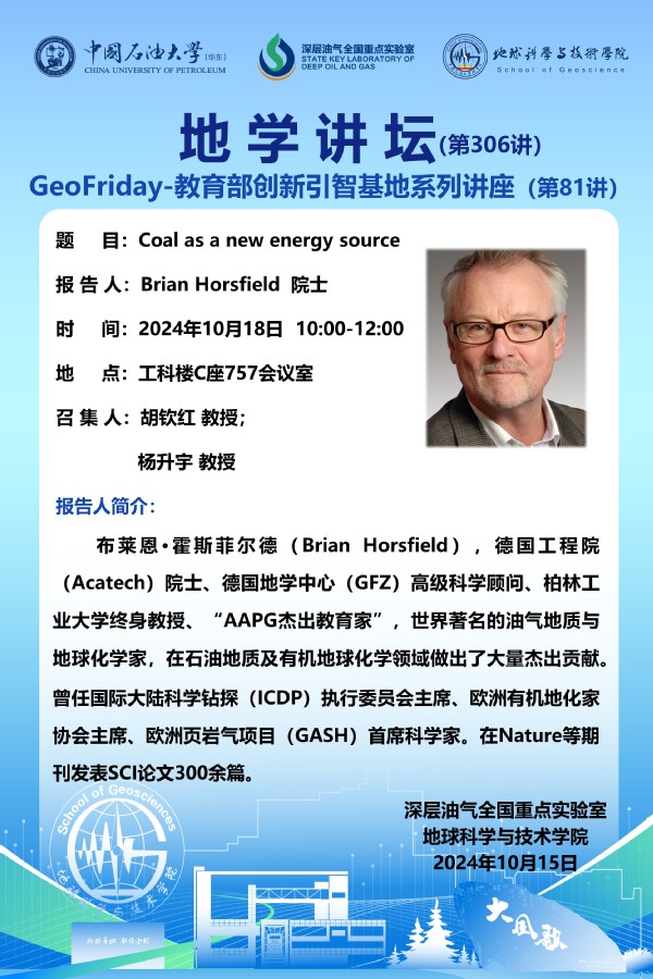 【地学讲坛第306讲】关于Brian Horsfield 院士 《Coal as a new energy source》学术报告的通知