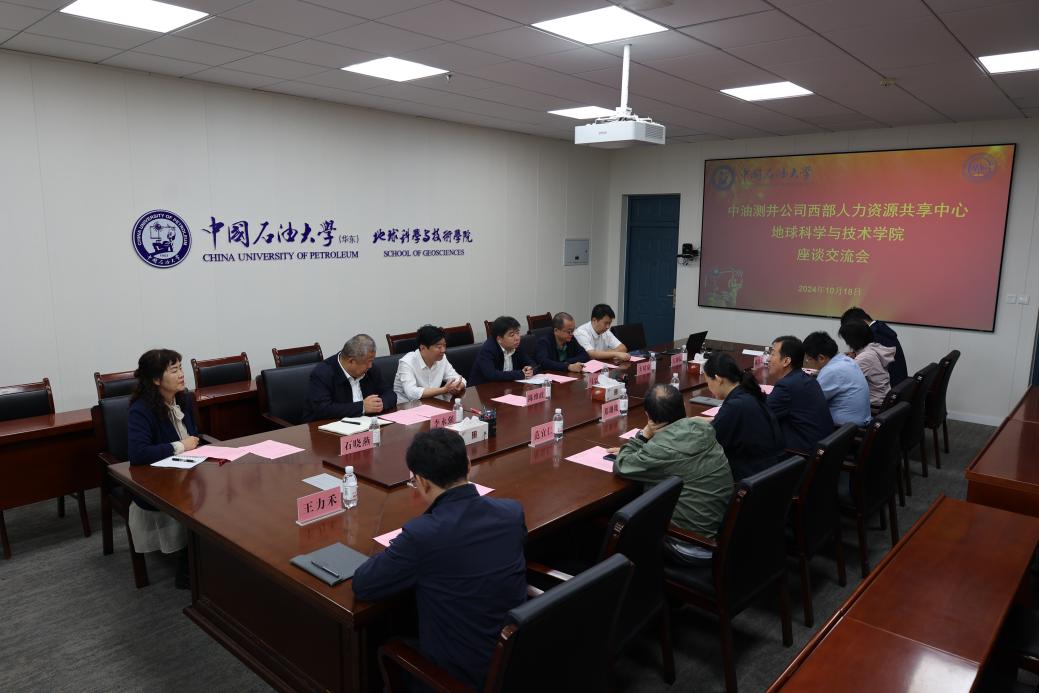 10月18日上午,中油测井公司西部人力资源共享中心主任马忠军一行6人来院座谈交流,公司副经理王冠,党委副书记郑珊珊,测井系主任张锋、教授范宜仁、副主任陈雪莲、副教授张凯以及公司团委书记王力禾参加座谈会。