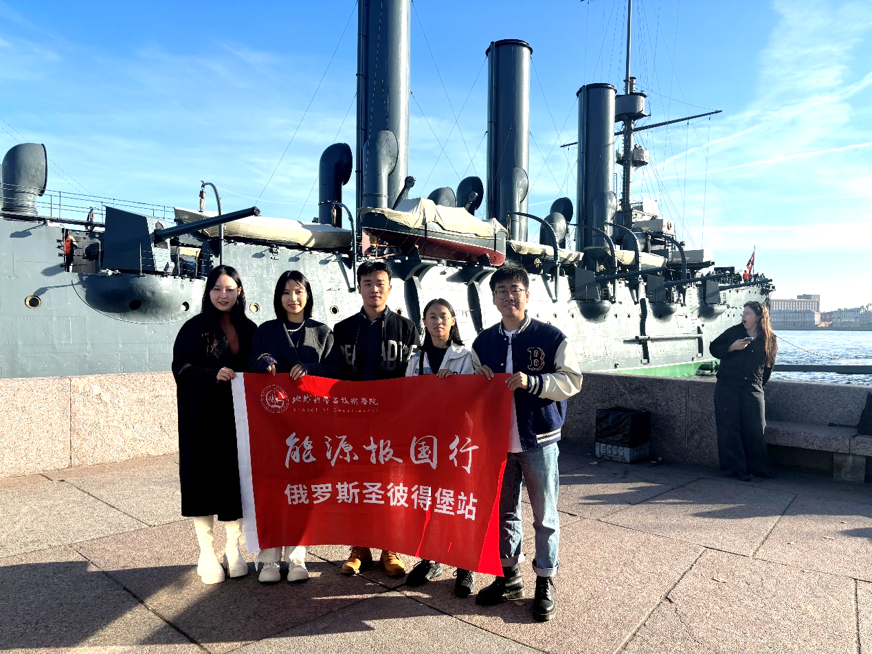 会后,“能源报国行”实践团师生赴阿芙乐尔号巡洋舰开展主题学习教育。阿芙乐尔号巡洋舰是1917年十月革命前夕向临时政府所在地冬宫开炮的舰艇,该事件宣告了“十月革命”的开始。实践团师生详细了解了“十月革命一声炮响,给我们送来了马克思列宁主义”的背景资料和重要意义。