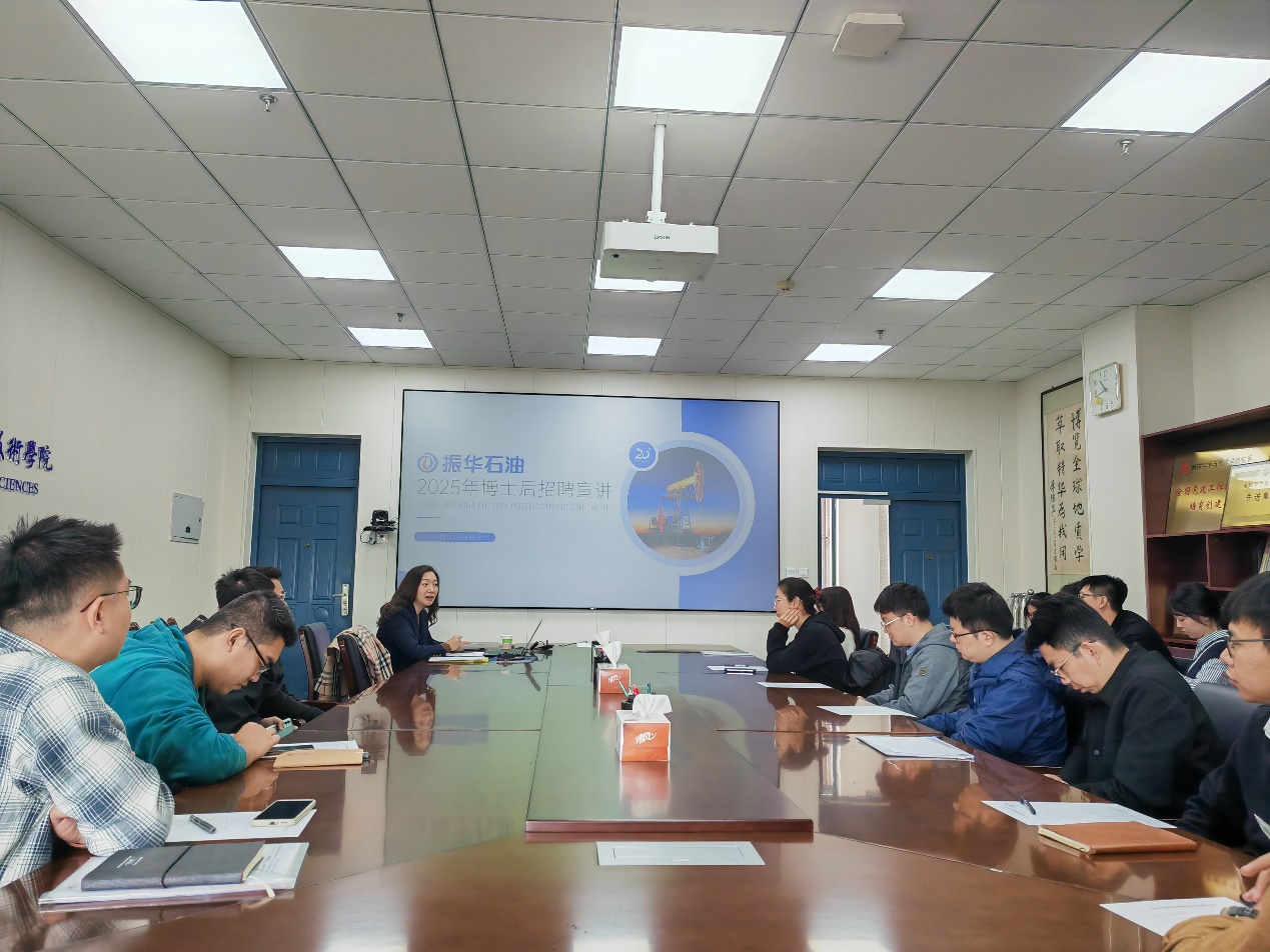 10月25日,振华石油控股有限公司(以下简称“振华石油”)在工科楼C座251召开博士招聘宣讲会。振华石油人力资源部业务经理刘月来院宣讲,研究生辅导员栗磊主持会议,公司20余名博士参加座谈。