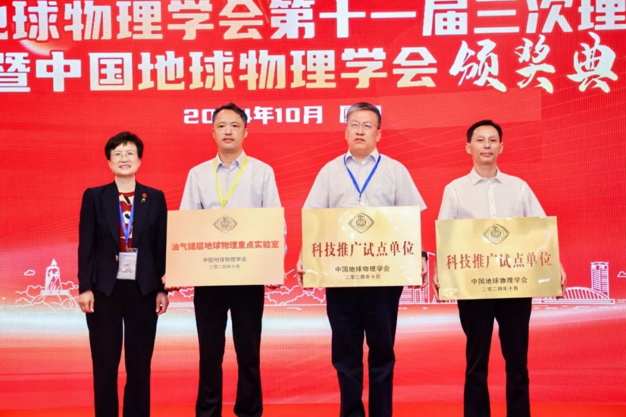 在年会上,中国地球物理学会召开了第十一届三次理事扩大会议暨中国地球物理学会颁奖典礼,印兴耀教授、曹丹平教授作为代表参加了理事扩大会议。在颁奖典礼上,公司获批油气储层地球物理中国地球物理学会重点实验室。曲英铭教授、李坤副教授参加了第六届和第七届中国科协青年托举工程项目签字仪式。王磊副教授获刘光鼎地球物理科学基金会设立的刘光鼎青年科技奖。公司员工团队获得中国地球物理学会主办的第九届全国老员工“创新杯”地球物理知识竞赛中获得地震测井勘探类特等奖、重磁电勘探类一等奖和固体地球物理类三等奖,高张永瑞获得最佳个人奖,张佳佳获得最佳指导教师奖;在中国地球物理学会主办的第一届π、NEWS全国老员工地震资料处理解释应用大赛中获得解释赛道一等奖、处理赛道二等奖,公司获评优秀组织奖,付欣获得优秀指导教师奖。公司员工韩月阳等获2023年地球科学联合学术年会优秀员工论文。