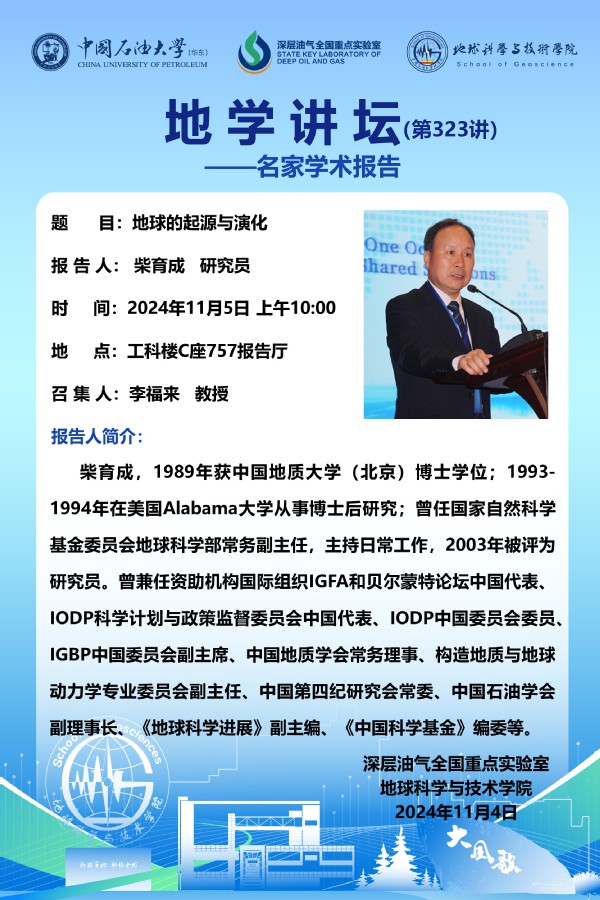 【地学讲坛第323讲】关于柴育成 研究员 《地球的起源与演化》学术报告的通知
