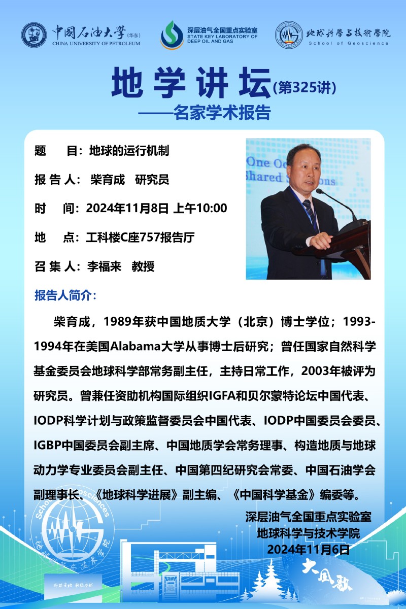 【地学讲坛第325讲】关于柴育成 研究员 《地球的运行机制》学术报告的通知