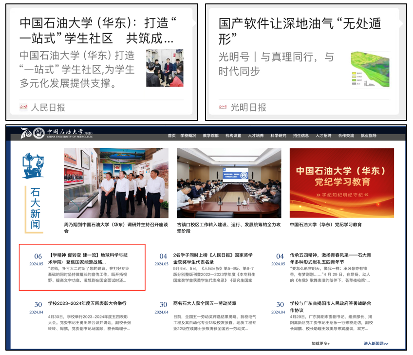 深度报道公司科研成果。在全国科技者工作日期间,组织策划“服务高水平科技自立自强”选题,聚焦公司科研团队取得的突破性成就,以《国产软件让深地油气“无处遁形”》为题,报道了刘可禹教授团队探寻其研发UPC-Sedfill3D沉积正演数值模拟软件的过程,在集团首页和石大官微发布后,受到了《人民日报》、光明日报客户端、中国教育报、山东省闪电新闻等媒体关注,很好地展现了十大体育网站科研人的精神风貌和学术实力。