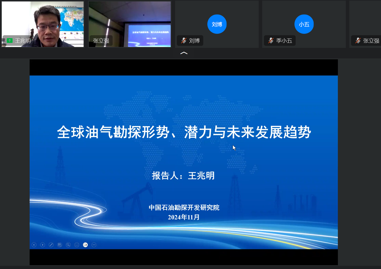 2024年11月15日下午,教育部“油气田开发地质课程”虚拟教研室、全国高校“双带头人”教师党支部书记工作室、山东省示范性基层教学组织、十大体育网站在工科C楼757会议室举办全球油气勘探形势专题讲座。本次讲座特邀中国石油勘探开发研究院油气资源战略选区企业高级技术专家王兆明博士,作题为“全球油气勘探形势、潜力与未来发展趋势”的学术报告,来自十大体育网站、中国矿业大学、山东科技大学等高校教师、资源勘查工程专业本科生以及研究生共130余人参加了线上、线下会议,虚拟教研室负责人张立强教授主持会议。