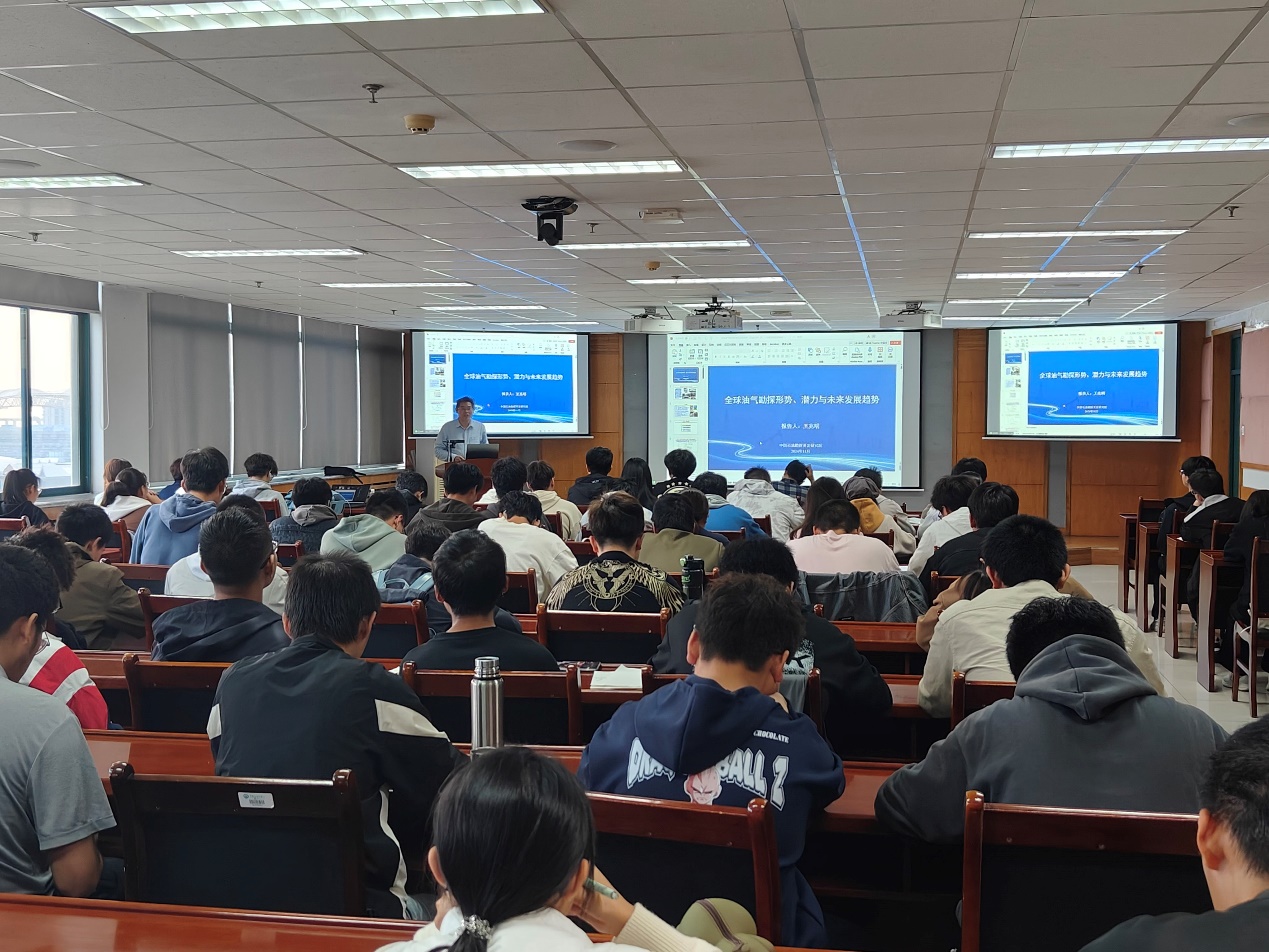 王兆明专家的报告引发了参会师生的强烈反响,最后,张立强教授对王兆明专家的精彩报告表示感谢,指出此次报告不仅让大家系统了解了国际和国内的常规和非常规油气勘探形势,包括氦气和氢气前沿领域的勘探进展,更是让大家深入了解资源勘查工程专业,为同学们做好未来职业规划指明了方向。