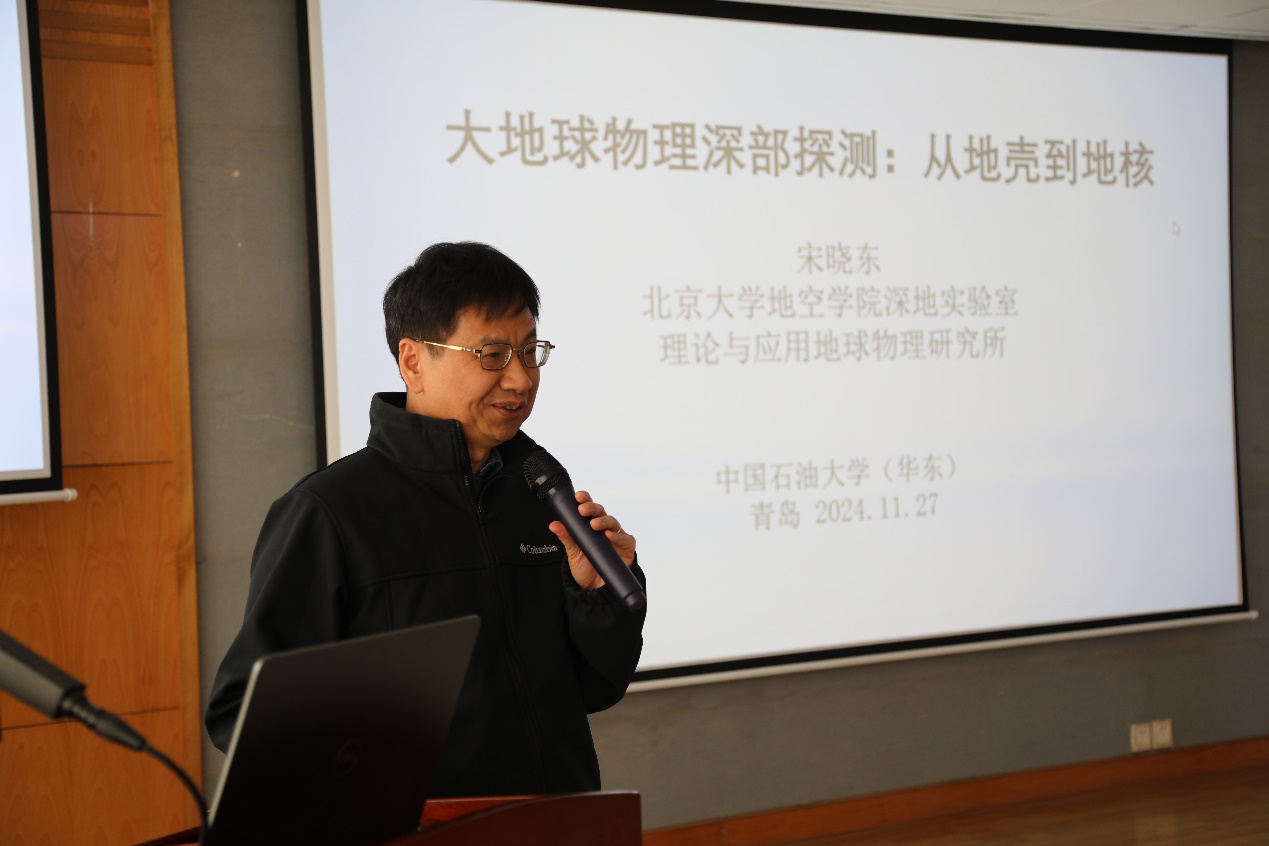 11月27日上午,地学讲坛第334期在工科C座757报告厅举行,北京大学讲席教授宋晓东教授做客地学讲坛讲述“大地球物理深部探测:从地壳到地核”的学术报告。韩同城教授主持报告,公司100余名师生参加报告会。