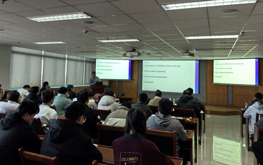 侯嵩博士就VIRIDIEN公司在人工智能对地震数据处理与解释中的前沿应用与突破,开展了主题为“人工智能驱动地震数据处理与解释的前沿发展”的学术报告。他通过实际案例分析,分享了如何利用人工智能技术优化地震数据从采集到解释的全过程,展示了多学科协作对技术转化的推动作用。同时也展望了人工智能在地球科学领域的潜在发展方向、技术前沿和面临的关键挑战。