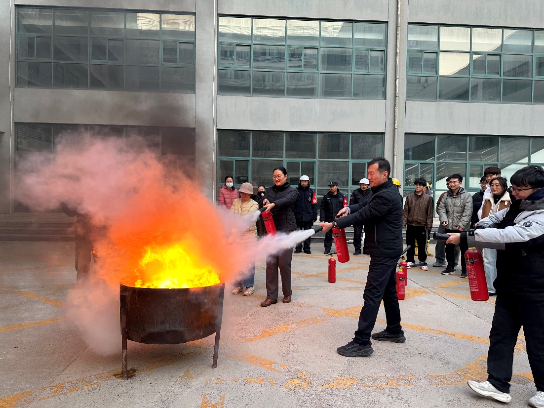 灭火演练开始前,王冠副经理强调了消防演练的重要性,并列举了实验室、工作室内常见的隐患,并提醒大家及时排查。保卫处孟祥钰为到场人员介绍了楼宇内听到火灾报警后,如何判断着火点与自己所在位置的距离,远离着火点和距离着火点较近的两种情况下,如何逃生,并以实操的方式,讲授了灭火器、灭火毯和防护面罩的使用方法。演练最后,到场师生进行了灭火实战演练,通过实际操作,掌握了灭火器的使用方法。