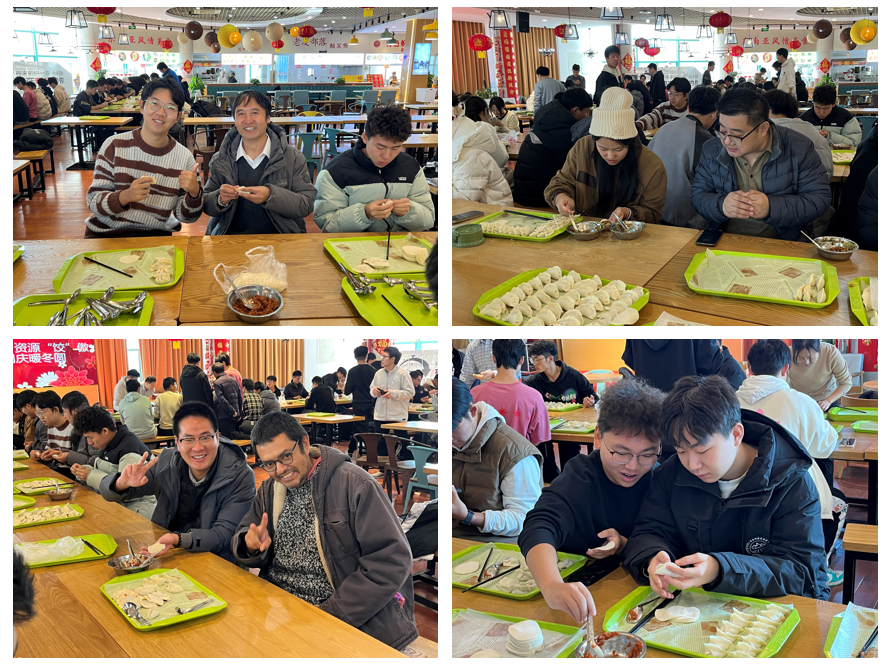 为了喜迎新年,营造良好的师生氛围,12月22日,由资源系师生精心策划,以“冬至瑞至,资源‘饺’傲”为主题的包饺子活动在荟萃餐厅三楼温馨开展,本次活动由资源2401班、资源2402班、资源2403班、资源2404班和本研地学2401班联合举办,资源系在校教师、班主任、2024级辅导员和全体同学参加。