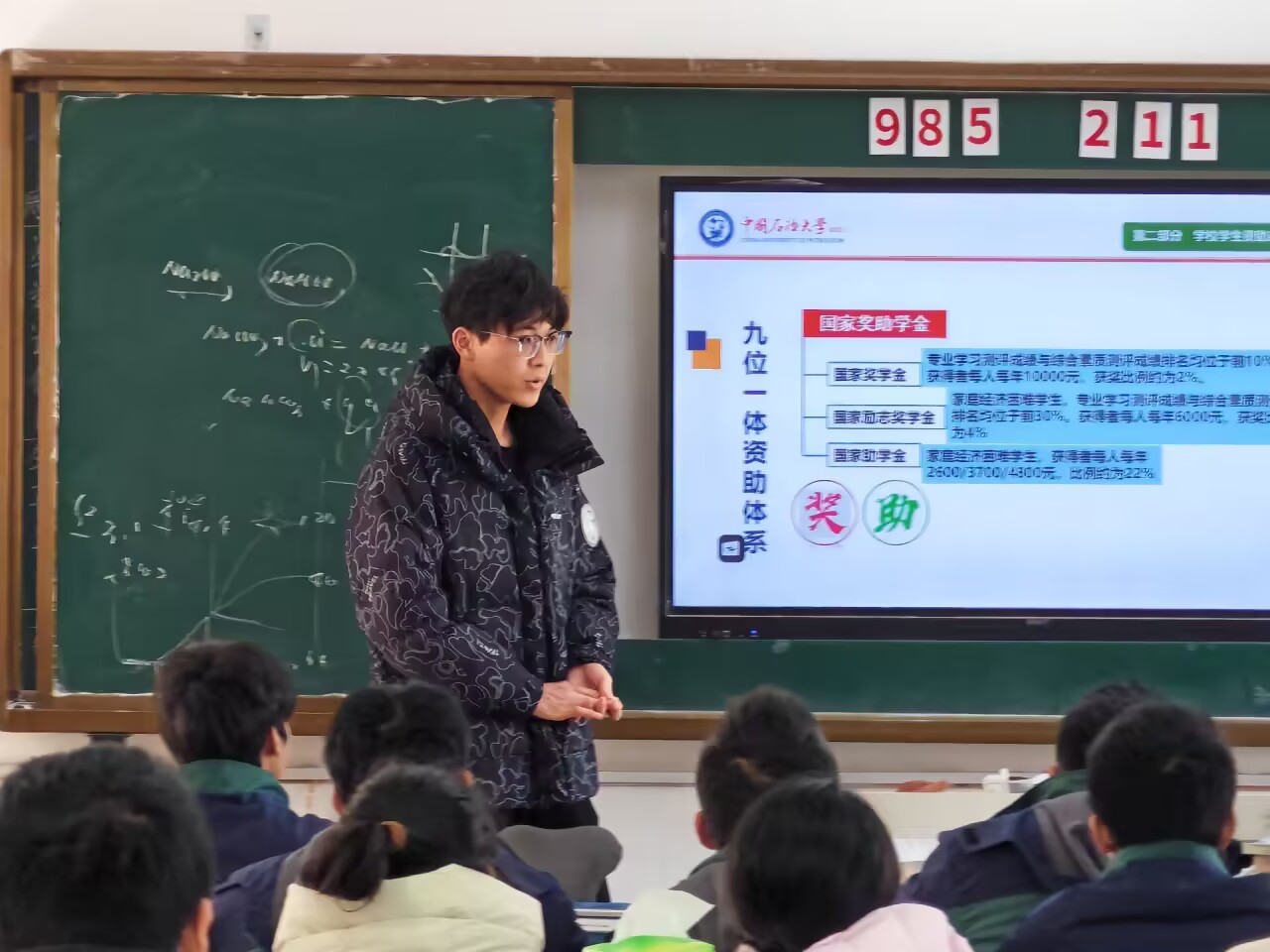 “高中坐在台下听学长宣讲的我,从未想过今天能以资助受益者的身份站在这里。”地质2201班于安祺回到高中母校山东省招远第一中学,以“奖学金背后的成长密码”为切入点,通过视频、图片和实物展示,“云游”十大体育网站校园。