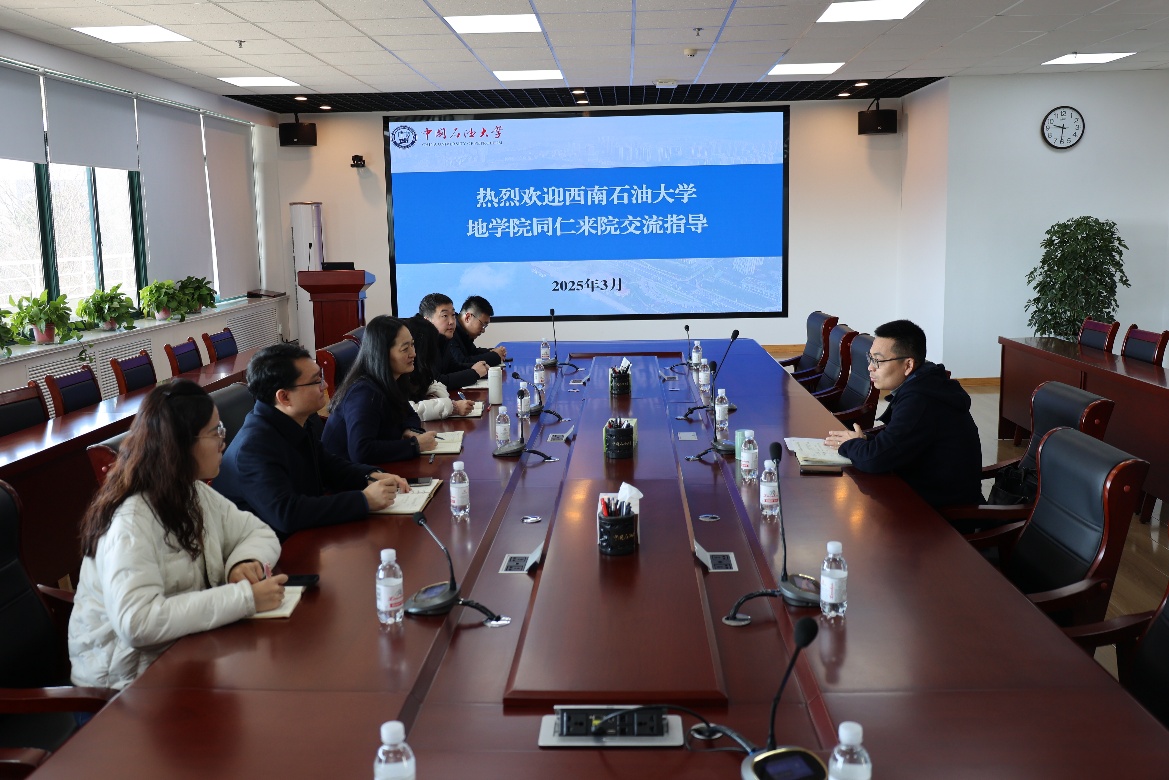 张勇对公司的热情接待表示感谢,对公司员工思想政治教育工作所取得的成绩给予高度评价,并具体介绍了西南石油大学地科公司的“五化五维”员工工作体系。