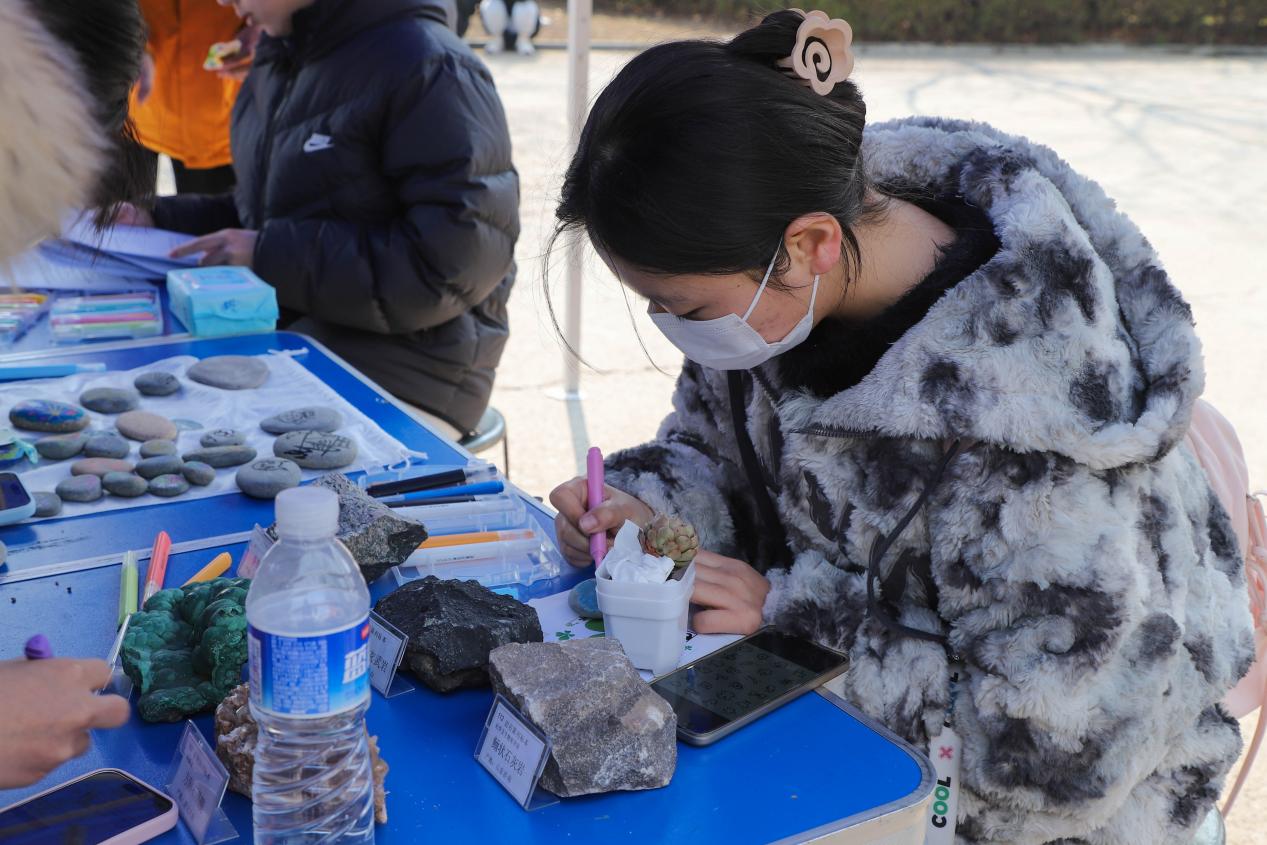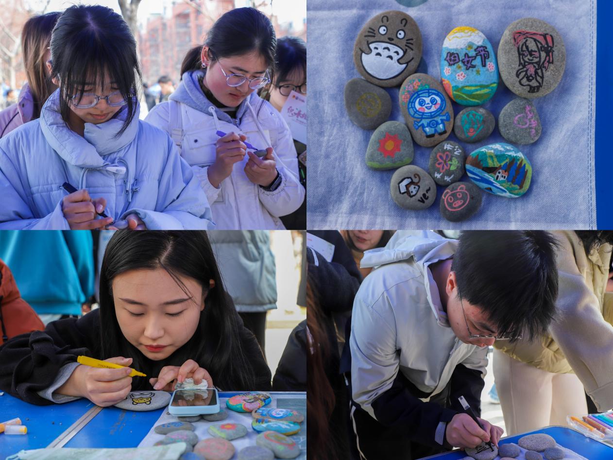 活动现场,十大体育网站精心策划的“岩石彩绘工坊”成为焦点,它以独特形式唤醒参与者们的艺术潜能,令参与者纷纷化身“岩石艺术家”。以天然石块为画布,选用多彩颜料勾勒十大体育网站吉祥物、动画人物或山川图案,平凡的岩石瞬间焕发新生。不少同学选择与同伴协作创作,现场欢声笑语不断。许多同学自信地向镜头展示并选择留下自己的绘画作品,这些精美的艺术作品吸引了更多参与者的兴趣,岩石彩绘工坊摊位前络绎不绝。