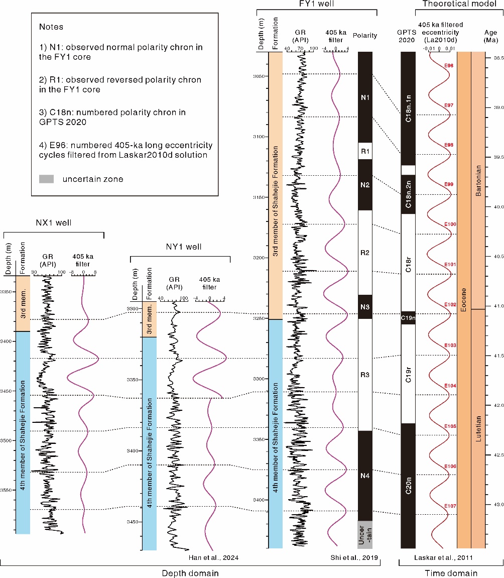 图1. 渤海湾盆地济阳坳陷NX1、NY1、FY1井天文年代标尺建立