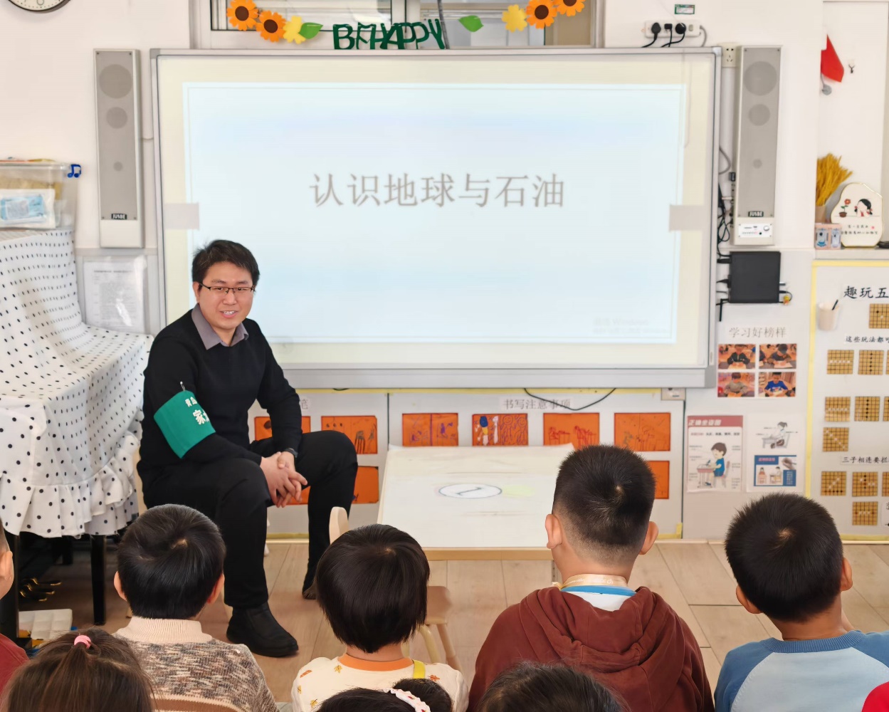 刘建良为幼儿园员工讲科普“认识地球与石油”