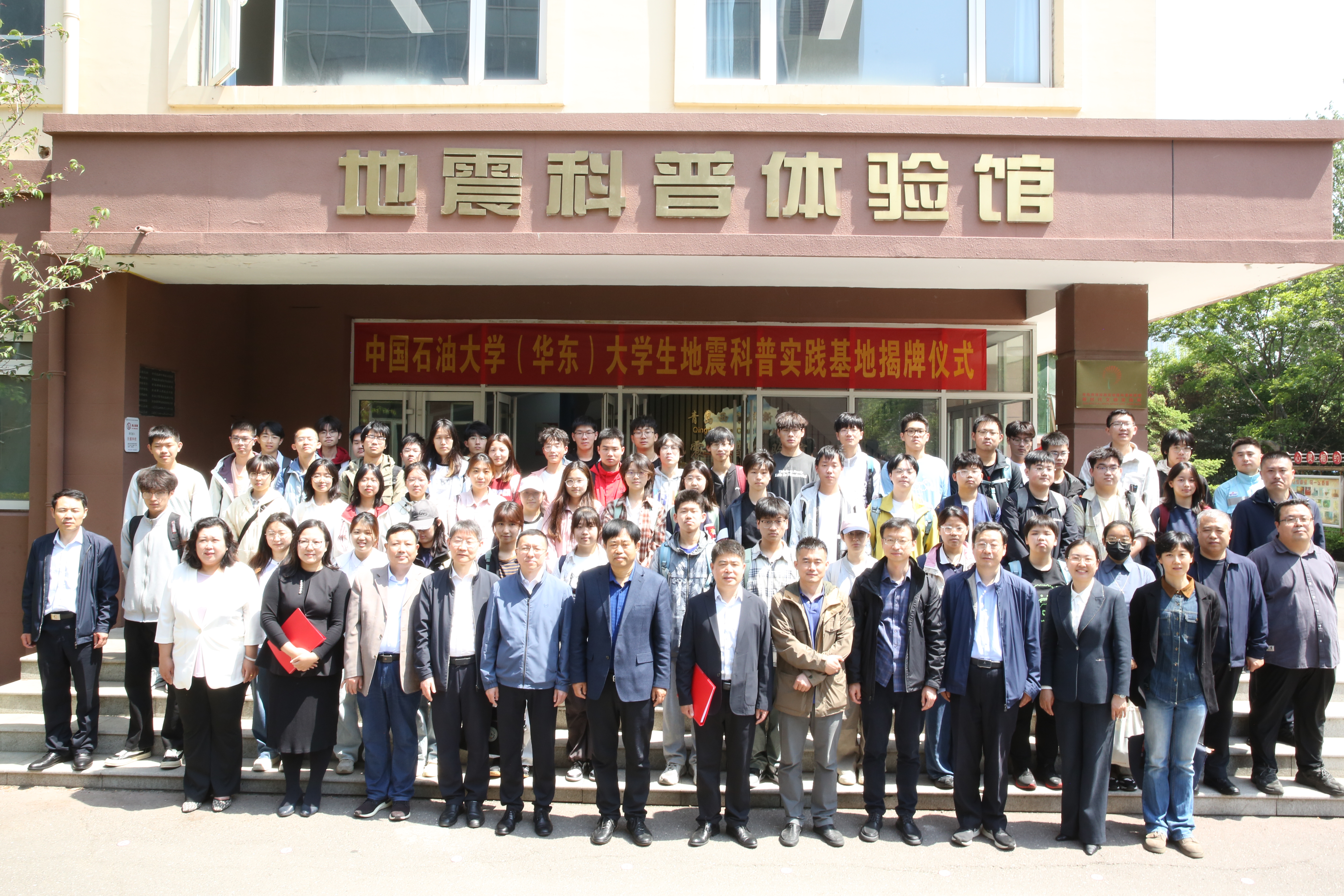 5 月 12 日,在第 17 个全国防震减灾日当天,十大体育网站老员工地震科普实践基地揭牌仪式在青岛西海岸新区地震科普体验馆顺利举行。公司党委书记牛庆玮、地球物理系主任张繁昌、地球物理系党支部书记张凯等教师代表,西海岸新区应急管理局(地震局)党委书记、局长沈久波,西海岸新区教育和体育局三级调研员、机关党委专职副书记周加勇,西海岸新区防震减灾中心主任殷文汇,青岛经济技术开发区第四中学书记王志娥,海丽雅集团副总经理、青岛海丽应急安全技术有限公司总经理郑文娇,以及西海岸新区防震减灾中心工作人员、青岛海丽应急技术有限公司相关负责同志和地球物理学 24 级员工等共同出席了此次揭牌仪式。