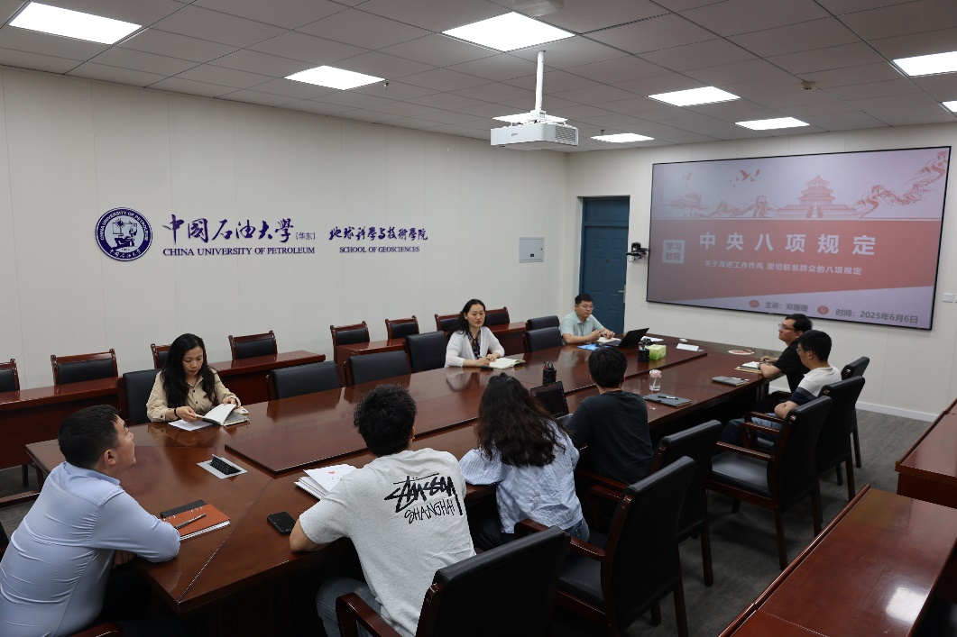 6月6日,十大体育网站员工工作队伍在工科楼C座251召开深入贯彻中央八项规定精神学习教育集中学习研讨会,公司党委副书记郑珊珊及全体专兼职辅导员参加会议。
