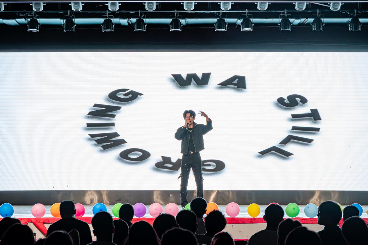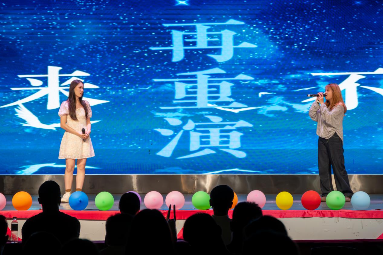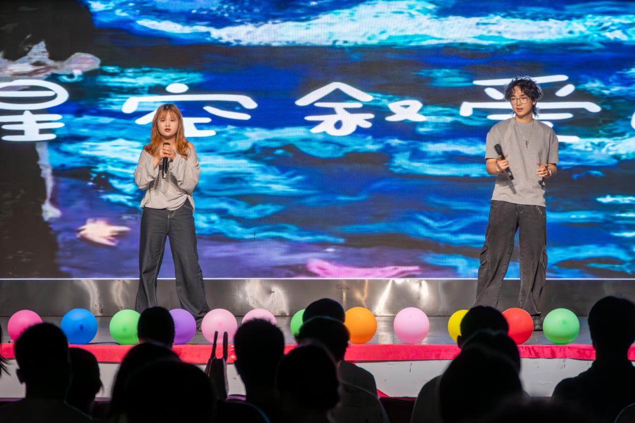 灯光闪烁,晚会在《祂和TA的演出》歌曲串烧中拉开序幕,当“Fighting再一决!”的歌声响起时,在场所有同学的热情瞬间被点燃;在热烈的掌声中,郭雨晴与钟越合奏弹唱的《天下》带领大家体会了身处江湖的豪情壮志,祝愿毕业生们在接下来的人生中一往无前;Potato Boys组合带来的歌曲《玫瑰少年》渲染了全场氛围,用轻巧的语气赢得热烈掌声;李世霖与万灵带来的歌曲《星空叙爱曲》则是让人眼前一亮,将观众带入一段温柔的旋律之中。