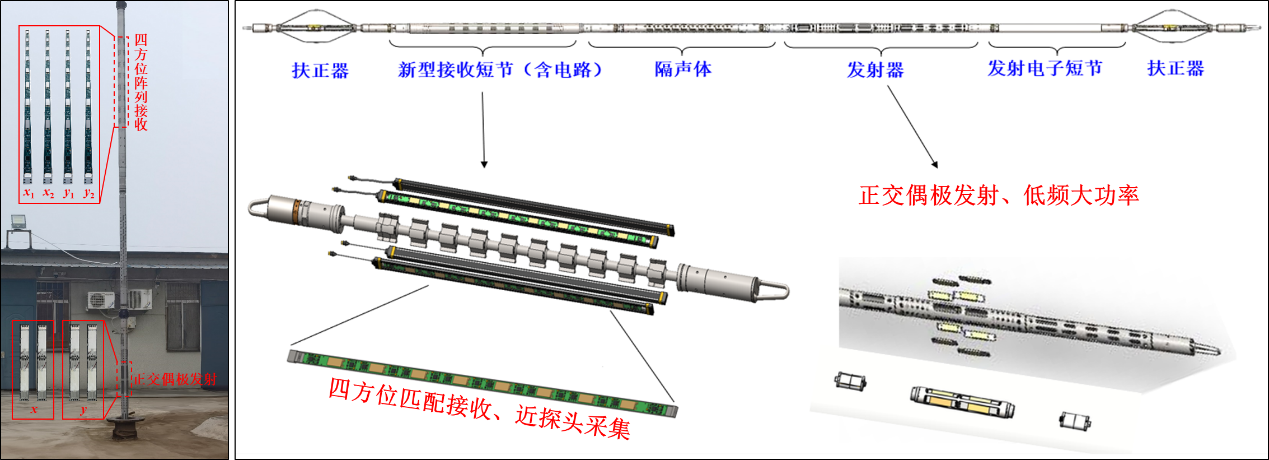 图2 新型全方位偶极横波远探测仪器样机及其结构图
