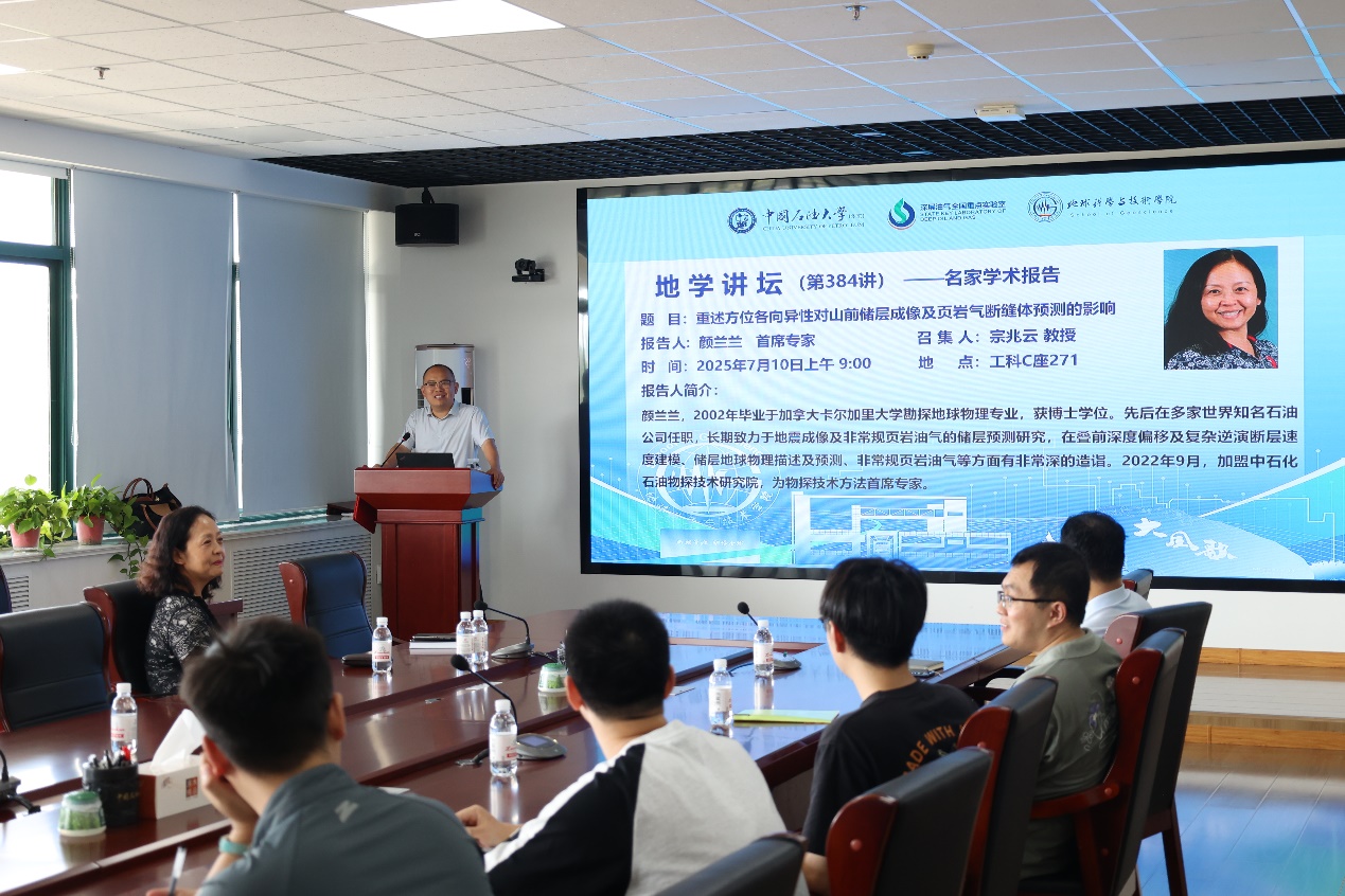 2025年7月10日上午,地学讲坛第384讲在工科C271成功举行,本次讲座由宗兆云教授召集并主持,中石化石油物探技术研究院颜兰兰首席专家应邀作了题为《重述方位各向异性对山前储层成像及页岩气断缝体预测的影响》的学术报告。此次讲座吸引了公司50余位师生参会交流。