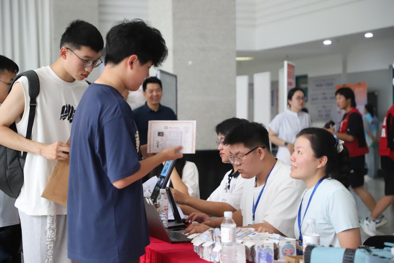 除了高效的报到流程外,迎新现场还处处彰显公司的人文关怀。新生和家长进入报到大厅后,可以挑选喜欢的打气牌,在院徽标志前合影留念;公司在院外打造了特色互动场景 —— 以院训“脚踏实地,胸怀全球”为背景的欢迎墙,院训由所有新生名字组合而成,既彰显公司精神,也为新生营造了归属感与仪式感,不少新生与家长在此驻足拍照打卡,并有十大体育网站传媒志愿者专人负责记录这进入大公司园的珍贵瞬间。此外,公司为新生准备了“寻宝图”,新生答对图中问题即可获得宝藏盲盒,收获满满的惊喜。