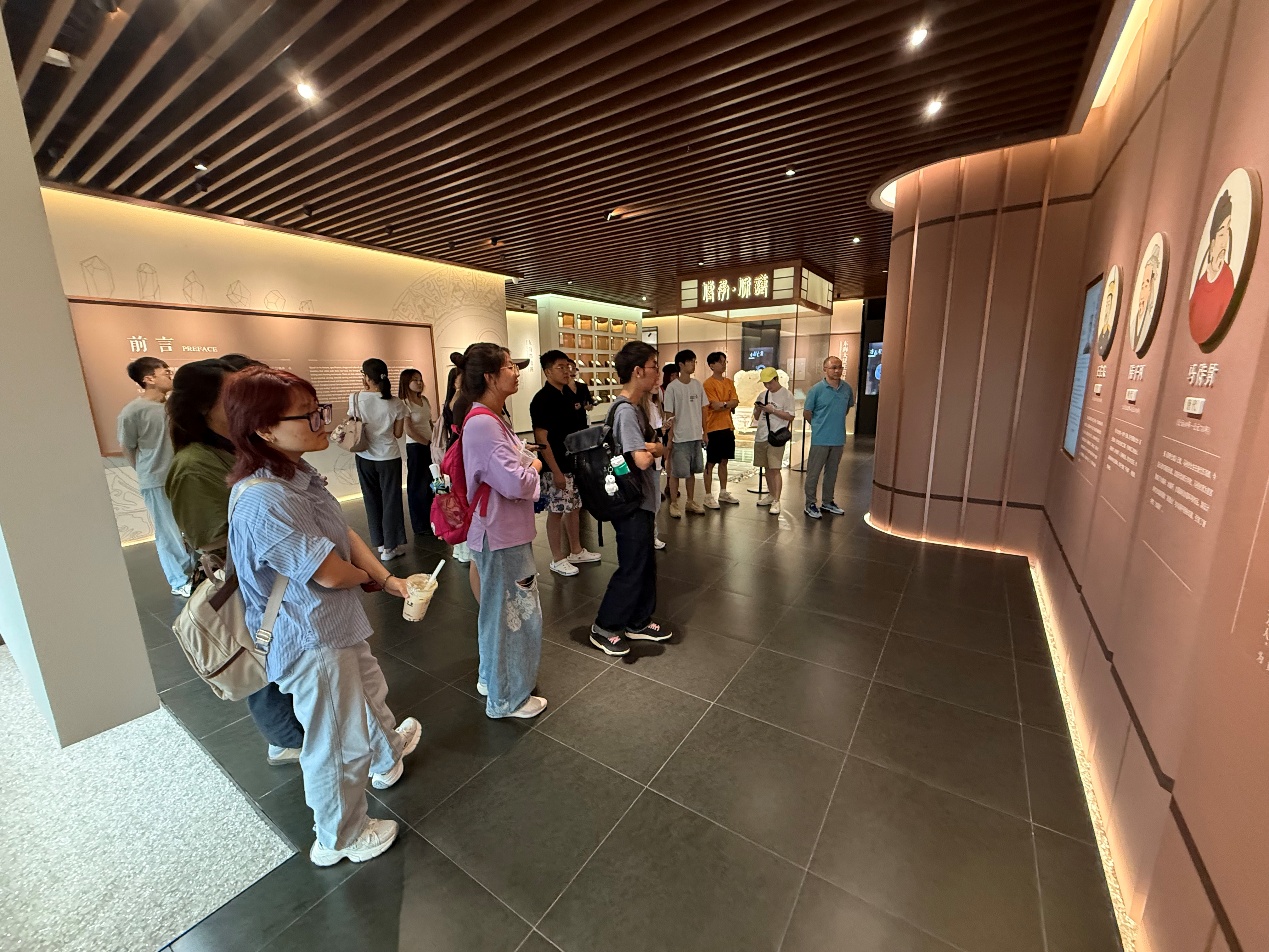 实习首站,同学们来到了我国规模最大的水晶类专题博物馆——中国水晶博物馆(中国地质博物馆东海馆)。作为全国科普教育基地,馆内详实的图文资料、珍贵的矿物标本和精美的地质模型,生动再现了水晶从亿万年前的地质运动中孕育、结晶到最终被发现开采的全过程。同学们在此将课堂上学习的矿物学、结晶学知识与眼前的实物一一对应,极大地加深了对宝石学理论知识的理解。随后,在东海水晶雕刻非物质文化遗产展览馆,同学们沉浸于艺术的殿堂,一件件巧夺天工的水晶雕刻作品,展现了国家级非物质文化遗产的独特魅力,使同学们深刻体会到地质瑰宝与人类匠心融合所创造的无限价值。
