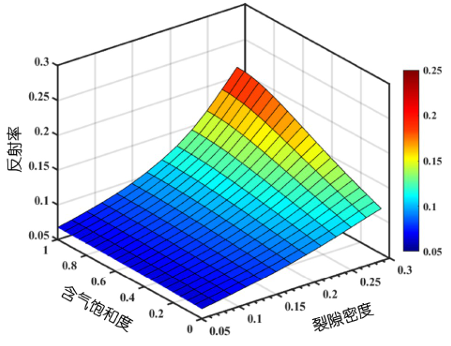 图2.孔、裂隙夹层声波反射率与裂缝密度和气体饱和度参数的关系