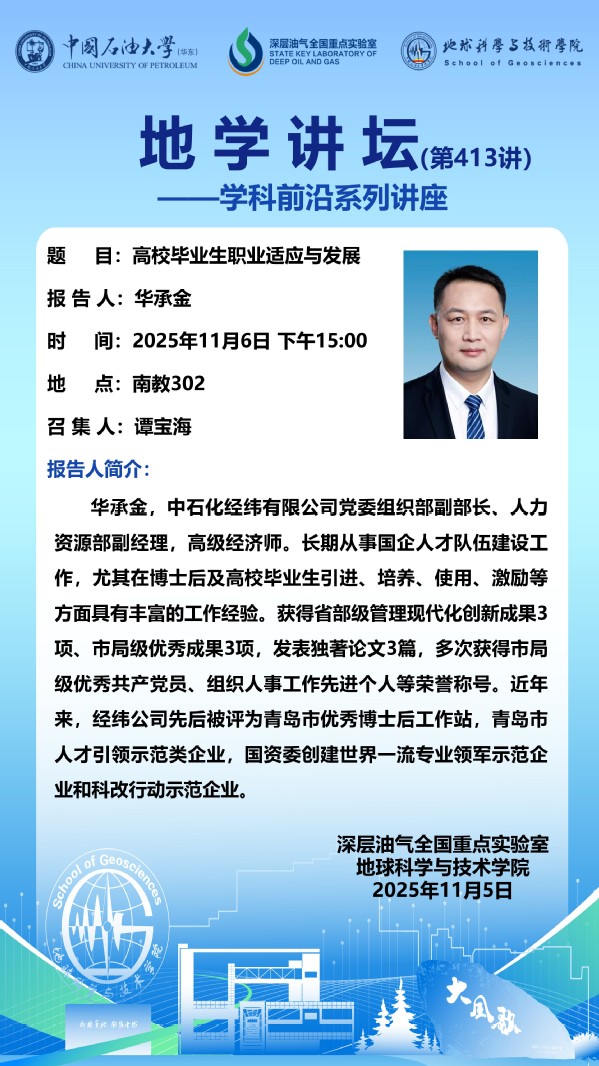 【地学讲坛第413讲】关于华承金《高校毕业生职业适应与发展》学术报告的通知