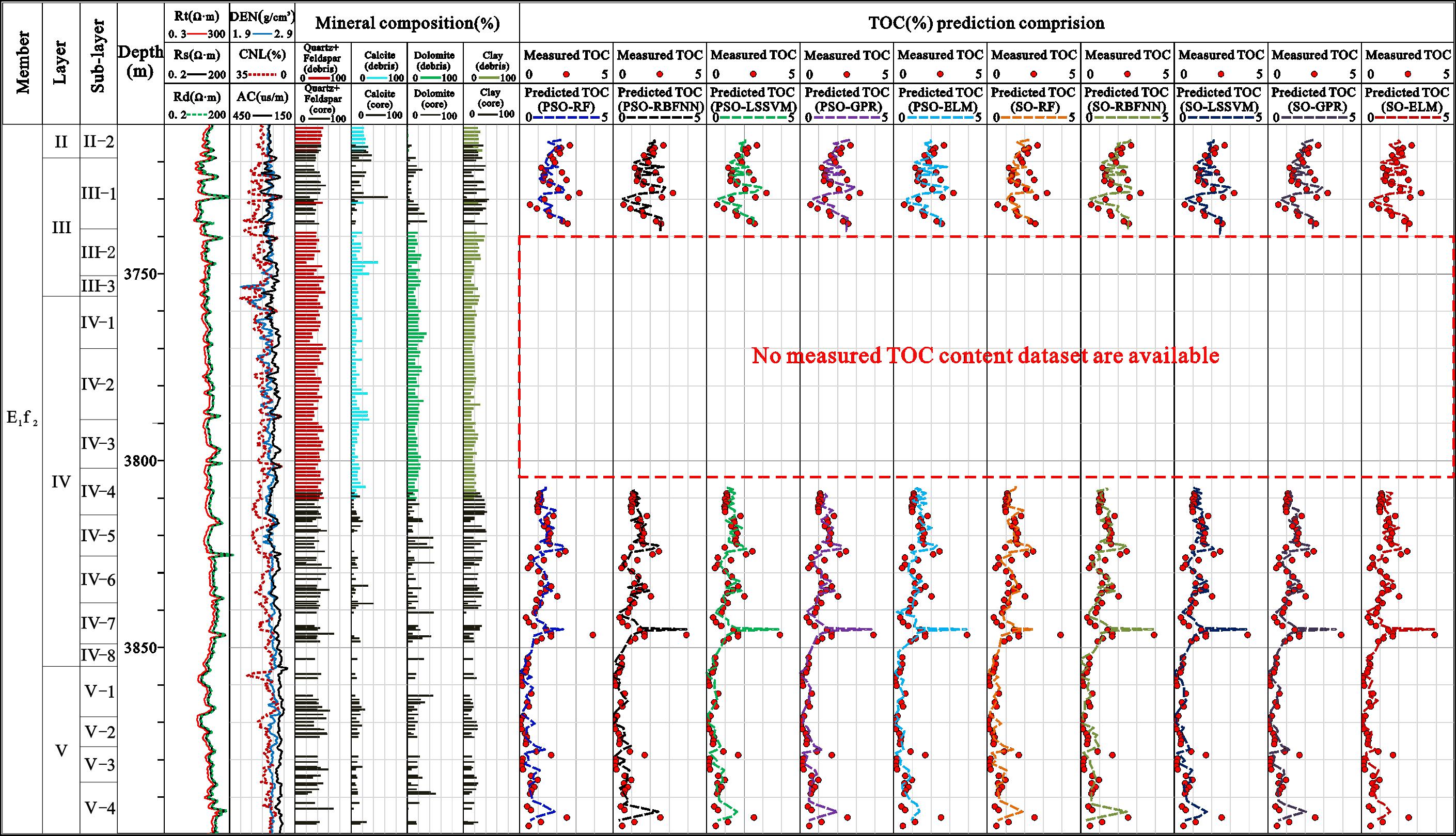 在页岩油气评价中,利用测井资料准确预测烃源岩总有机碳(TOC)含量,是识别和评价优质储层的重要基础。然而,现有基于物理模型的方法(如ΔlogR法和基于密度的计算方法)往往受限于参数难以准确确定、模型敏感性强及适用性有限等因素,在强非均质性页岩体系中难以保持稳定的预测精度。与此同时,随着测井数据规模的持续增长,数据驱动方法已成为TOC反演的重要补充;但传统机器学习模型普遍依赖人工经验调整超参数,其性能易受调参质量制约,往往难以获得最优的模型表达,导致预测准确性与泛化能力均遇到明显瓶颈。尤其在地质非均质性强、样本规模有限的条件下,传统方法更难充分刻画测井响应与有机质丰度之间复杂的非线性关系。因此,亟需构建一种能够自动优化模型超参数、提升预测精度与稳定性的智能化TOC反演框架,以突破物理模型精度不足与传统机器学习调参依赖性强这双重瓶颈,从而为非常规储层评价与开发提供更可靠的技术支撑。