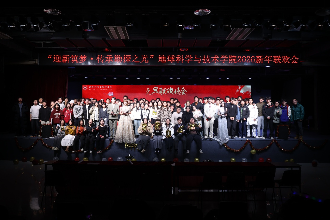 为迎接新一年2026年的到来,丰富公司师生课余文化生活,12月14日晚,公司于唐岛湾三楼演播厅顺利举办“迎新筑梦,传承勘探之光”2026新年联欢会。公司教授曲英铭与各年级辅导员姜永昶、英飞、王佳、张瑞琳、张胜博、谷雨帆出席,公司400余名师生齐聚一堂,共庆元旦。