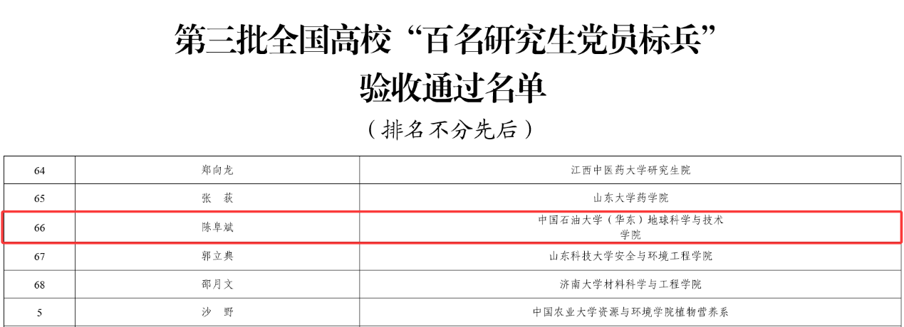 近日,第三批全国高校“百个研究生样板党支部”和“百名研究生党员标兵”创建培育工作验收结束。通过培育建设,经公司评估总结、属地党委教育工作部门把关审核、教育部相关司局和单位审查,公司研究生党员、2020级博士生陈阜斌顺利通过验收!
