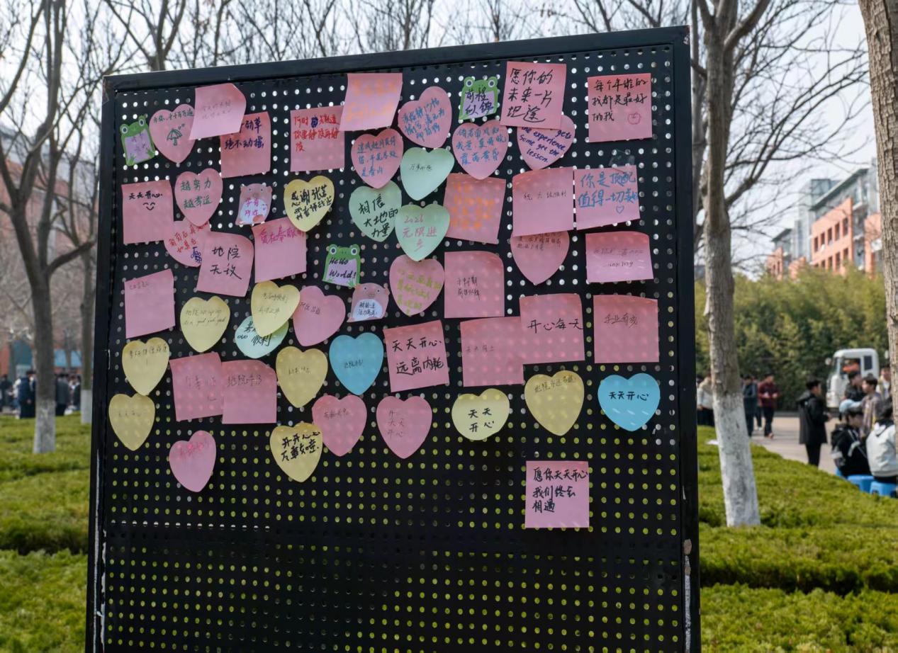 地质心语留言墙更是精彩纷呈、暖意浓浓。一句句对女性同胞的美好祝福、一张张写满鼓励话语的小纸条:“愿你心有丘壑,眼存山河”“自立自强,绽放属于自己的光芒”……女性力量与彼此期许藏于字里行间,让思美节的温暖在校园中持续传递。这些真挚的话语如同一颗颗种子,在春日里生根发芽,激励着每一位女生勇敢追梦。