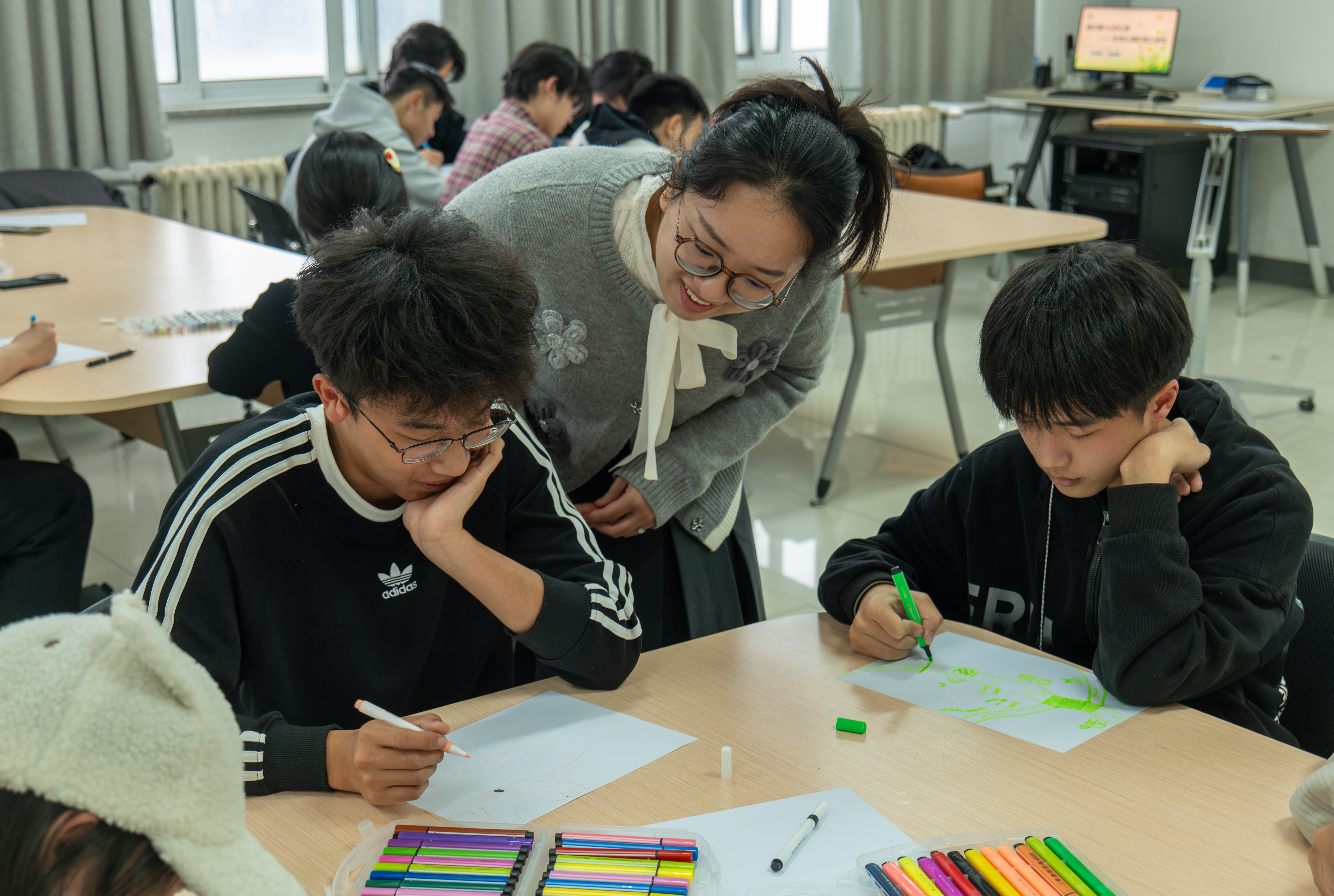 随后,活动进入核心环节——“生命河流”主题体验。在王佳老师的引导下,同学们以画笔为媒,将抽象的生命历程转化为一条条独特的“河流”。在“便利贴留言”环节中,同学们写下对未来自己的寄语,将希望与力量寄托于纸间。这一过程不仅帮助同学们梳理过往经历,也在回望中重新发现自身的韧性与成长的意义。